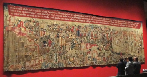 Lo curioso de estos tapices es que son los primeros utilizados para narrar hechos coetáneos. Hasta entonces se usaba con fines decorativos con motivos religiosos o del mundo clásico. De ahi su valor como documento histórico.