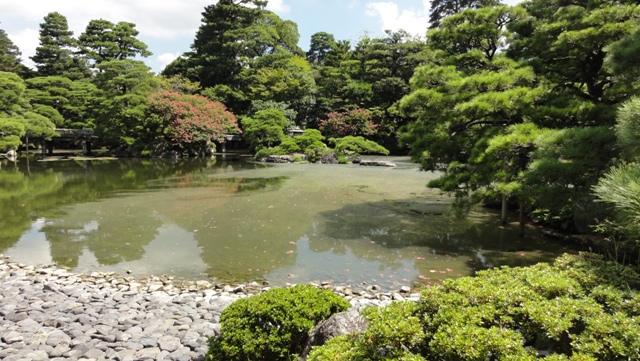 Perdona que haya tardado en escribir pero no tenía internet. Kioto es enorme, la próxima vez tendré que venir por lo menos una semana. Cada día me levanto al amanecer y recorro jardines y templos. Ayer fui a visitar el Palacio Imperial. Un despliegue de pabellones rematados en oro y cortezas de caqui. Cada plancha dura veinte años y tardan veinte años en cambiarlas todas. Así que cada vez que acaban tienen que volver a empezar. Los jardines parecen sacados de un cuadro impresionista. Un contraste entre una vegetación cargada de hojas y flores delicadas, el lago congelado en el tiempo y los caminos de grava extraída de un cauce sagrado, consagrada a los pasos del emperador y su familia. Un viaje a la época Edo. Te encantaría.