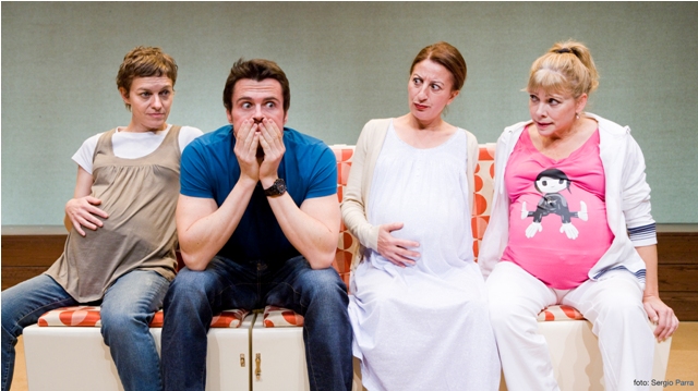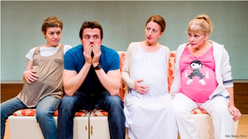 En el escenario, el salón minimal de la famosa y alocada Rocío, Kiti Manver. Tan minimal que sólo tiene una pared y tres sillones. Reunión de antiguas alumnas. Ángela, Aurora Sánchez, funcionaria y viuda compungida, pasa del llanto al éxtasis al descubrir el jacuzzi de su amiga. Primera carcajada. Carlota, Nuria González, ex obesa divorciada, reina de la crítica y las ideas geniales, como quedarse embarazadas del mismo donante para tener tres hijos-hermanos. Segunda carcajada. Juan Carlos Rubio desarrolla una trama que raya lo absurdo con diálogos hilarantes y la ayuda de tres actrices fantásticas.