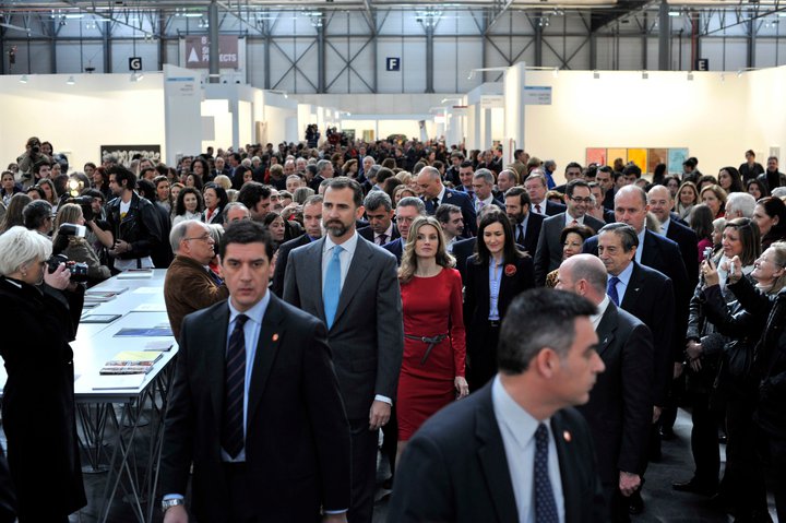 Un paseo por ARCO entre lienzos, coleccionistas  y rostros conocidos. Una corte de fotógrafos pululan alrededor de los Príncipes de Asturias acompasados en gris y rojo. Las autoridades en azul ceremonia, les acercan a galeristas consagrados en blanco y negro y a los más jóvenes en naranjas y limas. Nosotros nos deslizamos entre los pasillos blancos atrapados por la fuerza de una multiplicidad de formas y texturas. Los puntos rojos comienzan a salpicar nuestras favoritas. Un buen modo de celebrar el 30 aniversario de la Feria Internacional de Arte Contemporáneo.