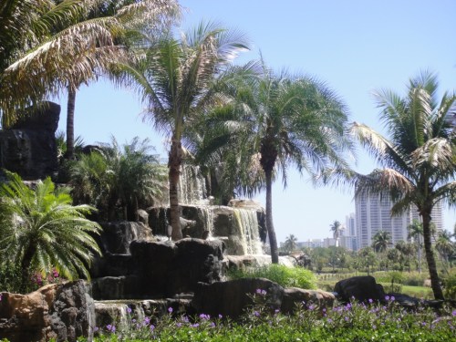 Las camas de hotel son extrañas. Por mas cómodas que sean siempre uno extraña la suya. Por que será?. Estoy en la costa norte una zona tranquila. Es verdad que Miami esta muy construido pero yo me despierto sobre cascadas y lagos de un campo de golf fantástico. Un saludo