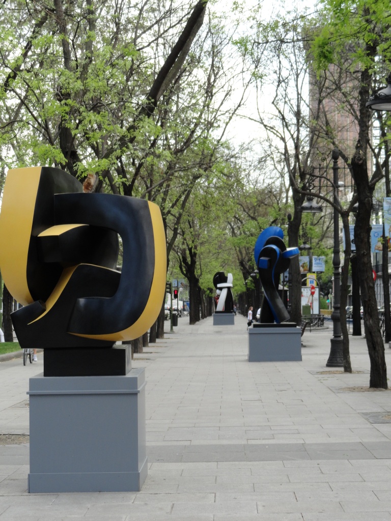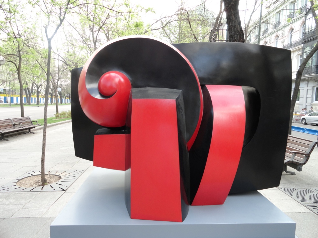 Recorro el camino de vuelta envuelta en una nube. Al fondo Colón alza sus brazos hacia nuevas tierras. Me pregunto por qué mirará a Atocha si América esta al oeste. Encuentro La Castellana salpicada de esculturas. Sus formas redondeadas y sensuales resaltan sobre las aceras. Apetece acariciarlas. Una pareja se acerca con una cámara. La mujer vestida de rojo danza entre las espirales policromadas. Una nota de color en un bulevar que se cubre de ozono cada primavera.