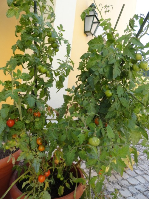 Aparté el periódico tras el desayuno. El mundo transita desbocado entre crisis y recelos. Bajé al porche y revisé las macetas que planté en primavera. Me sorprendió encontrar alguna fresa tardía, un puñado de berenjenas violetas y un pepino maduro que colgaba desafiando la atracción de la tierra. Y sobre macetas de barro ramas cargadas de racimos encarnados y verdes, promesas de vida. Increíble la cantidad de tomates que me regalan tres plantas.
