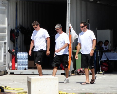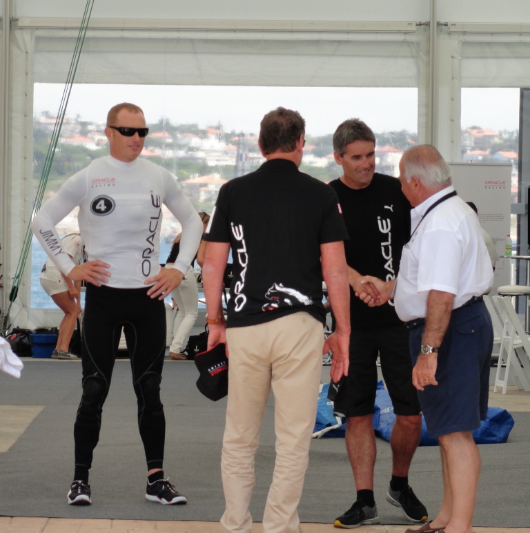 Jimmy Spithill y Russell Coutts de los Oracle Racing USA