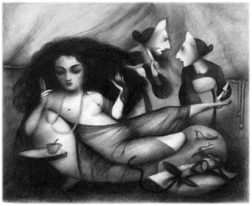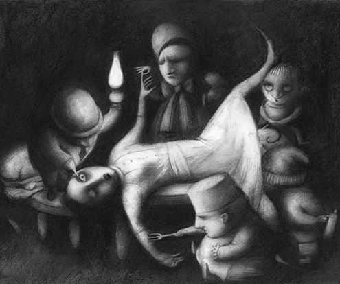 Geniales escenas imaginarias sobre este cuento…mi mas sincera enhorabuena a tu amiga Ana, mi pasión es el diseño en general…y siempre me gustó pintar a carboncillo…aunque no sé si es esta técnica exactamente…pero son fantásticas!