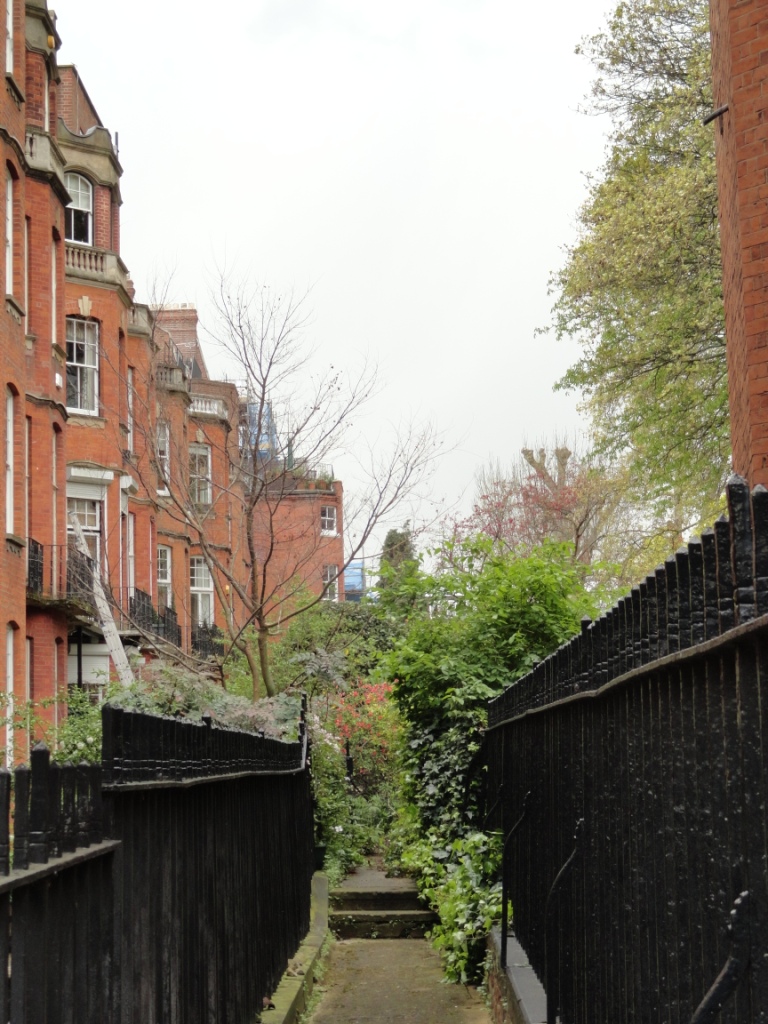 El domingo diluvia. Recorremos las tiendas de Oxford St. siempre abiertas y terminamos empapadas. Por la tarde clarea. Un paseo por Mayfair sin coches ni gentes. Tras una ventana una lámpara exhibe sus lágrimas de cuarzo. Tras el visillo, una joven sonríe.  Me pregunto cuantas historias atesorarán sus pupilas de porcelana. Descansamos en un banco entre palomas y margaritas. Qué bonito es abril en Londres.