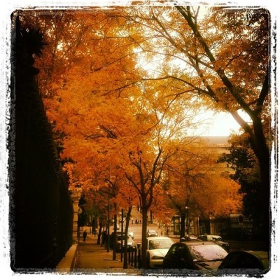 Mañana gris. Los balcones húmedos. Llovió de madrugada. Tras la ventana las acacias despobladas se mecen al son de rachas blancas. Las rachas levantan pétalos dorados entre las copas en su danza de otoño.  Las aceras descarnadas se cubren de un manto pardo que se deshace a cada paso.