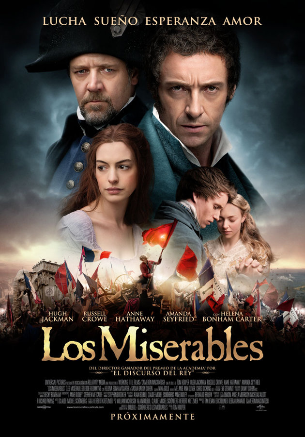 Ya conocía la voz de Hugh Jackman, limpia y de ámplio rango, de su actuación en The Boy from Oz en Broadway. No en balde comenzó su carrera en musicales en su Australia natal. El esfuerzo físico de encarnar este Jean Valjean es impresionante. Yo le daría un Oscar. La Fantine de Anne Hathaway emociona, quizá le tenga que agradecer a Jackman otro Oscar, y nos sumerge en la miseria de la Francia prerrevolucionaria.
