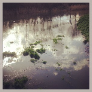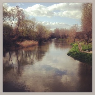 Rio y cielo en conjunción perfecta. Por un momento me parece estar en la campiña británica. La corriente arrastra troncos y hiervas a velocidad de vértigo. Nada que ver con el lecho blanquecino de aguas estancadas que acostumbro a encontrar en mis visitas al centro, el arroyo aprendiz de río del que ya se mofaban Góngora y Quevedo.