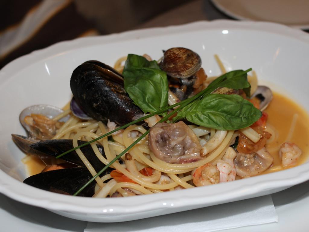 Por la noche mesa en Amarone muy animado a partir de las siete. La ensalada caprese, mi test particular de los restaurante italianos, sobresaliente. El queso en su punto de acidez y los tomates autenticas joyas de otro tiempo. El crostini de homgos crujiente y con un agradable toque de especias. Continuamos unos linguini con pescados escoceses y salsa de tomate natural y un risotto de cangrejo y gambas fresquisimos. No en balde Amarone ha sido seleccionado como el mejor restaurante de Glasgow en 2012.
