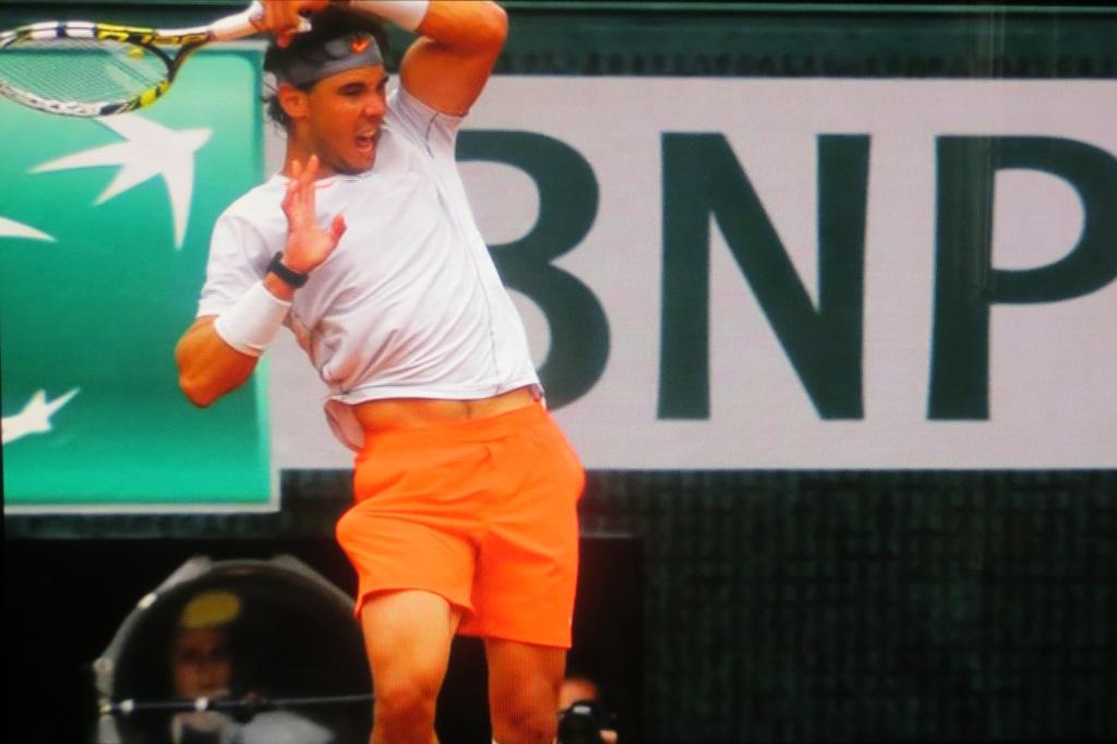 Tarde española en Roland Garros. La final enfrenta a Rafa Nadal con David Ferrer en la pista central bajo una lluvia intermitente rodeado de un público rendido al mejor tenis en la tierra roja de París. Una tierra sobre la que Rafa se va imponiendo a un David Ferrer algo cansado tras dos semanas increíbles de torneo, su primera final en un Grande.