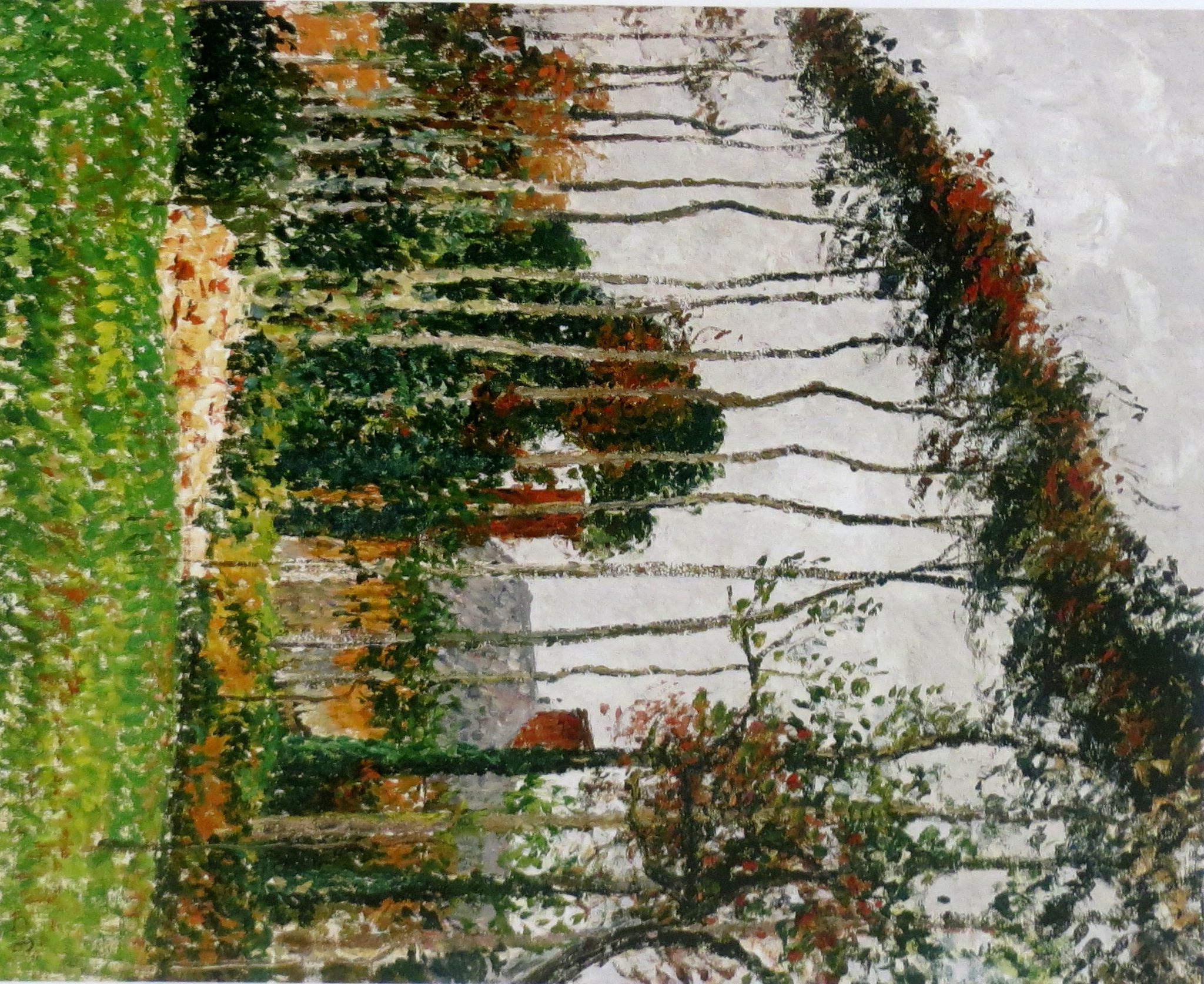 En la primera sala, descubro su mirada inquieta envuelta en una larga barba blanca. Su primer viaje a Francia desde las Islas Vírgenes a los alrededores de París que cautivaron su paleta transformada en arboleda. Curiosa ocurrencia. Los caminos de Pontoise, las orillas del Marne, dibujados con esmero, homenaje al maestro Corot. Después los apuntes de su primer viaje a Londres acompañado de Monet, con el que compartirá pasión por las series.