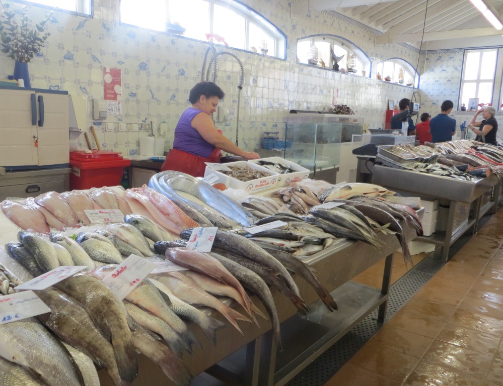 Al fondo mujeres de negro limpian escamas y cabezas. Escojo una lubina de lomo oscuro y vientre plateado. Nada que ver con las de piscifactoría que venden en mi mercado. Lola, una clienta gallega, me comenta que siempre compra en ese puesto desde que su marido abrió el restaurante Casa Velha, hace mas de veinte años. El lenguado y las lubinas de Cascáis tienen fama de ser los mejores del mundo. Aunque la mejor merluza siempre será la gallega.