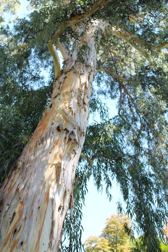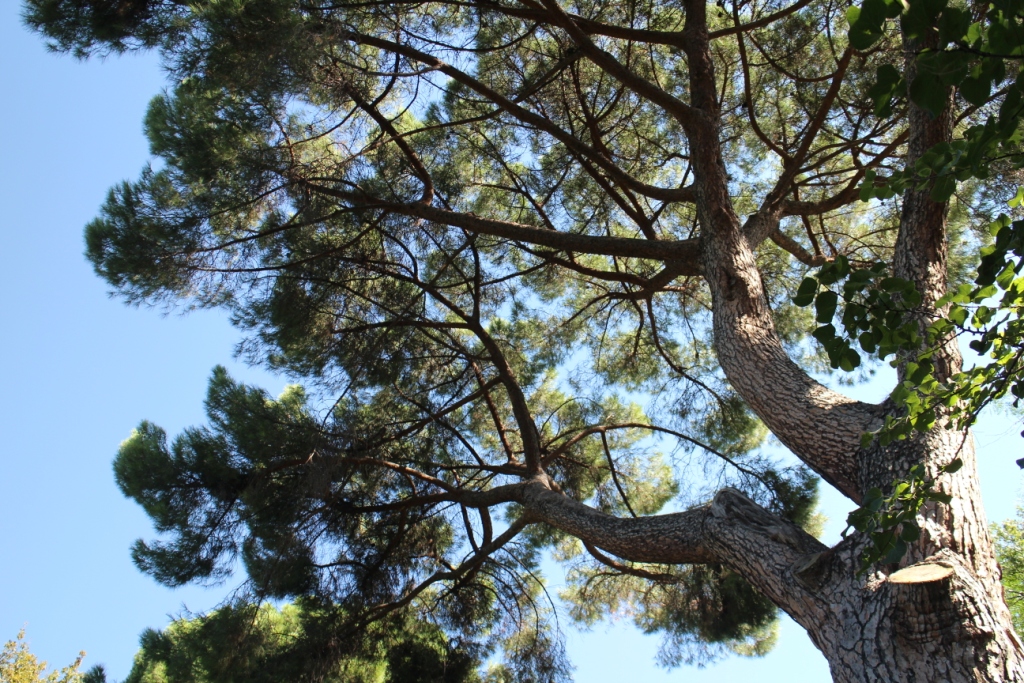 Alzo la mirada y descubro que algunas ramas se van tiñendo de cobre. El aire se inunda con una trompeta lastimera. Más adelante un hombre ensaya una melodía bajo un inmenso pino mediterráneo. Acaricio las grietas de su tronco centenario y la comparo con la del castaño de indias y del eucalipto. Esculturas de la naturaleza.