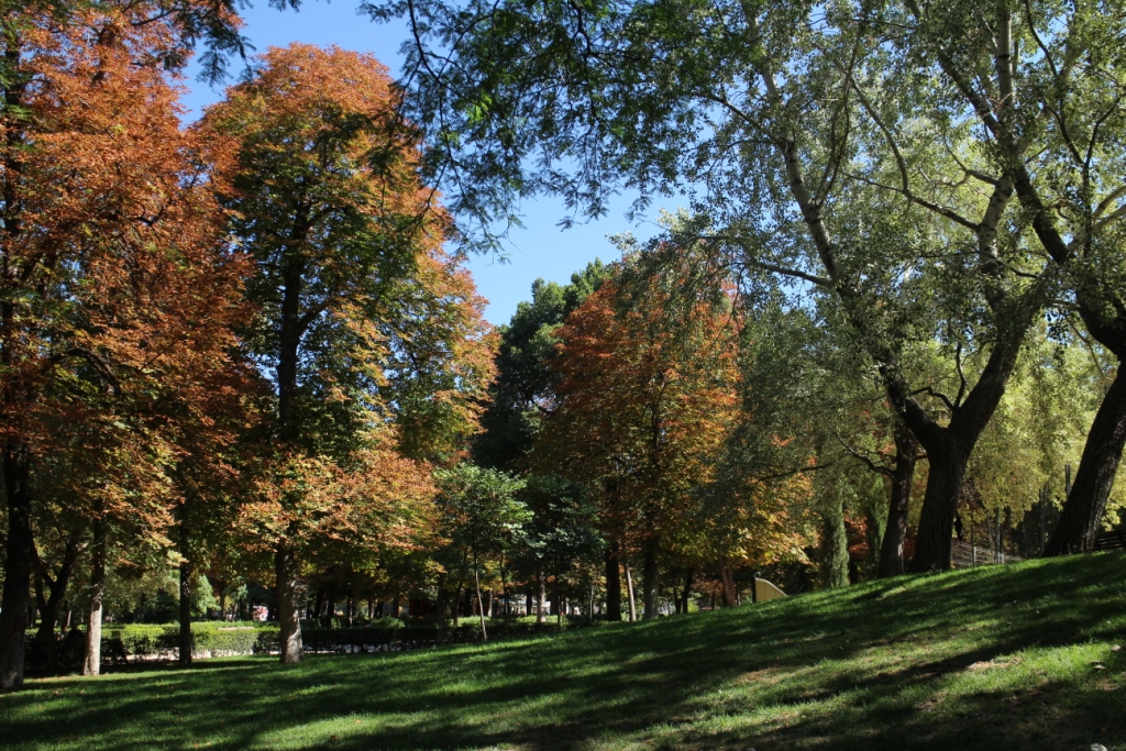 Media hora recorriendo los senderos a paso rápido, tengo recuperar la forma tras tanto viaje, me siento en un banco a la sombra de un plátano y observo.  Silencio, olor a humedad, trinos y melodías se funden en mi alma vencida por el sueño. Un sueño de otoño.