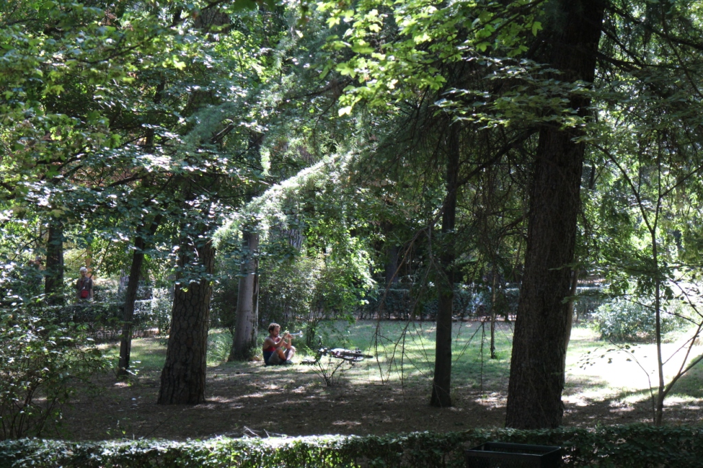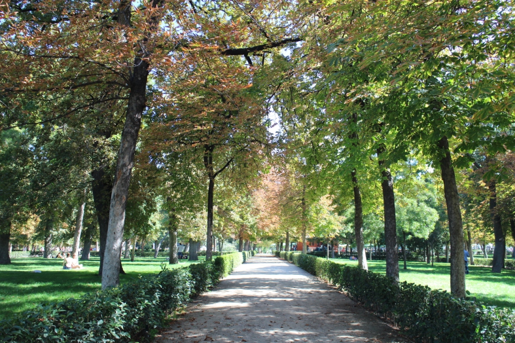 Me adentro por uno de los caminos menos transitados cubierto por las copas centenarias. Los sonidos de la ciudad se van desvaneciendo. Qué suerte poder contar con este pulmón en pleno centro. Sobre la hierba alta y frondosa, parejas unidas en abrazos, mirlos, palomas y urracas picoteando algunos frutos secos.