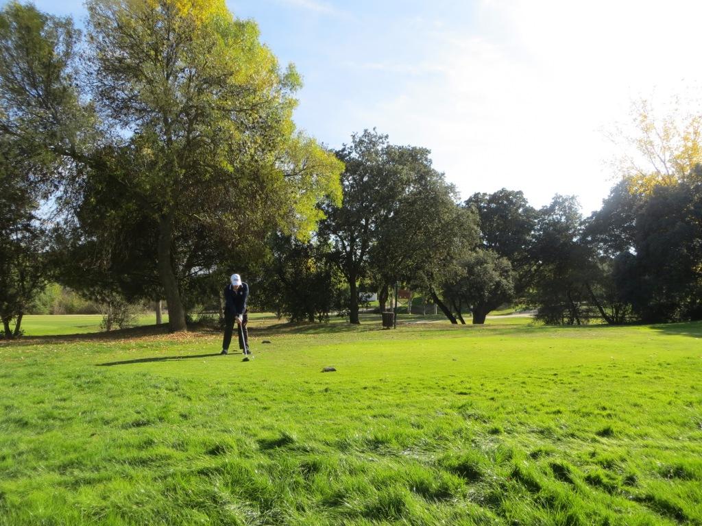 Diciembre. Mediodía. Un bocadillo y un paseo hasta la Cuesta de las perdices. Nos desviamos en la salida del Hipódromo y cruzamos la cancela del Club de Campo donde nos esperan nuestros compañeros de juego.  Nos acercamos al Hoyo 1 del recorrido diseñado por Severiano Ballesteros en 1994 perfectamente integrado en el recorrido largo, unos calentamientos, hace un frío de justicia,  y el primer golpe.