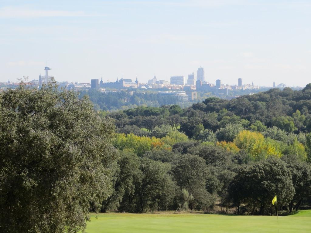 Me llama la atención la belleza de las calles entre arboleda. La intensidad del verde, la hierva siempre fresca y muy bien cuidada. Terminamos con los segundos hoyos del primer recorrido y en el hoyo 16 me sorprende una vista impresionante del Palacio Real, la Almudena y los jardines del Moro. Un campo privilegiado sin duda. Qué buena manera de desconectar de la ciudad y sumergirse por unas horas en la naturaleza.