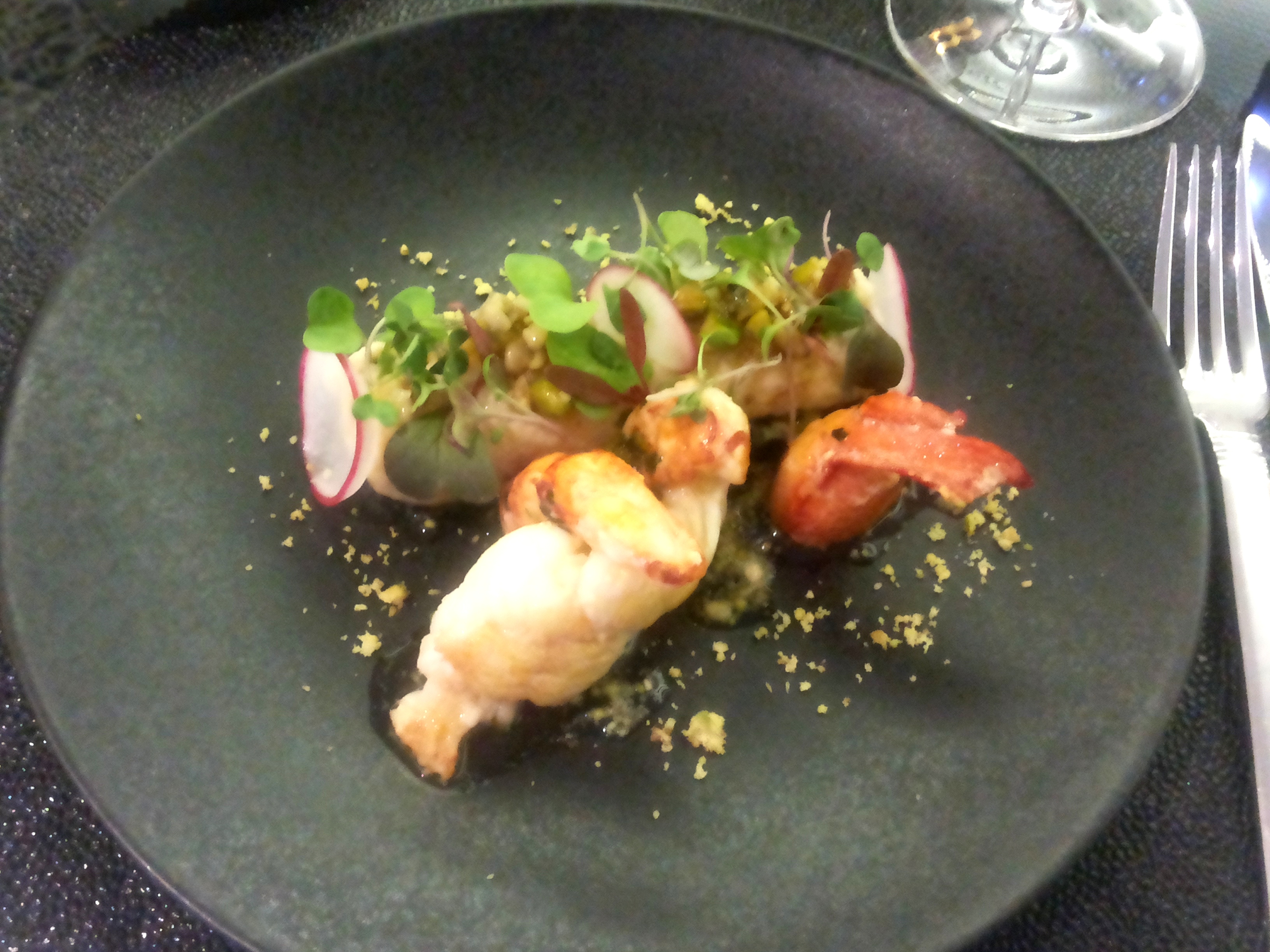 Verduritas sobre una góndola de puré, arroz en costra con gamba roja y una soberbia ensalada de bogavante de texturas delicadas y paladar auténtico. La propuesta de Mario Sandoval nos enamora. Merecidísima la estrella Michelín que ostenta en su restaurante de Humanes, Coque.