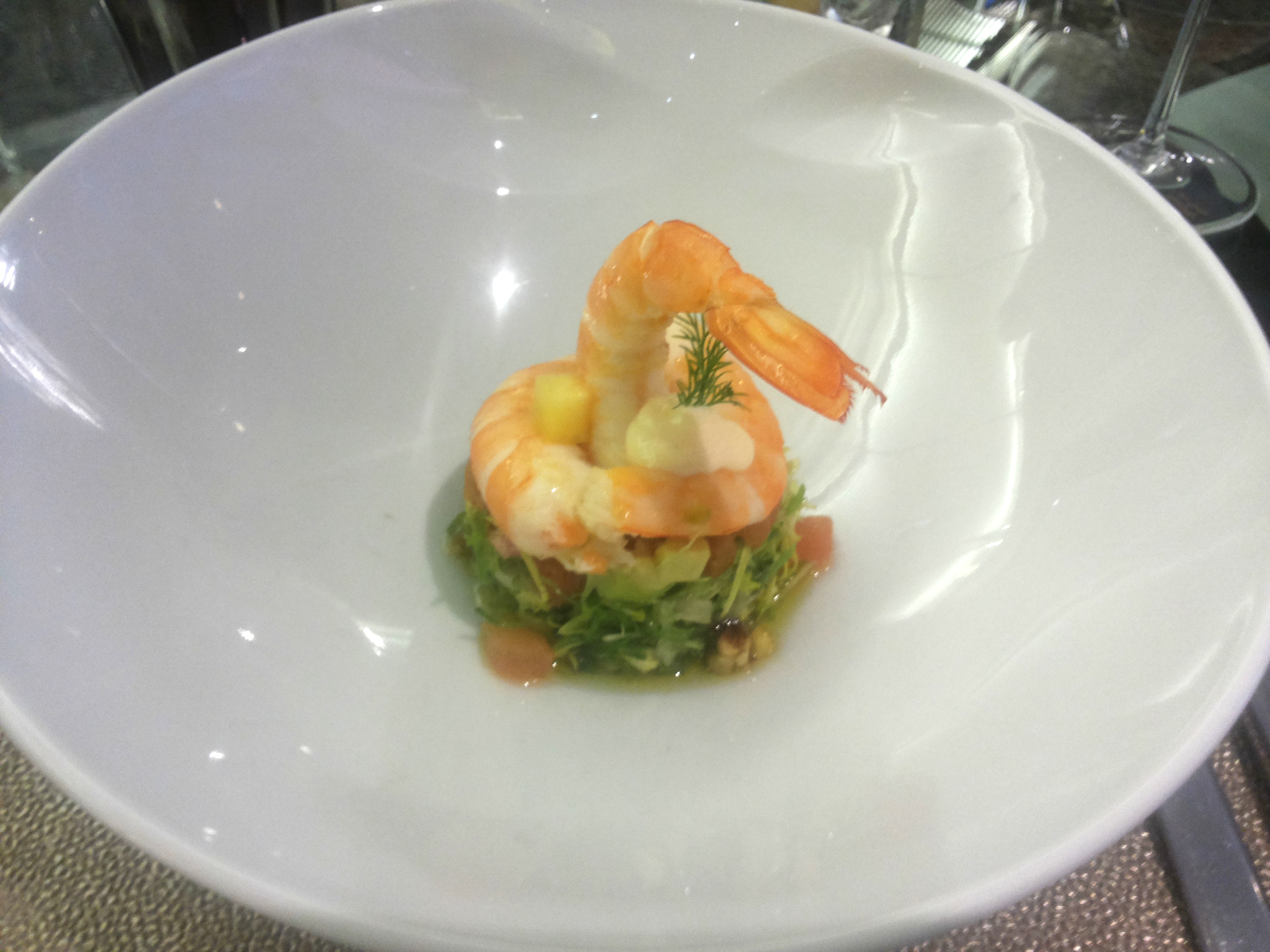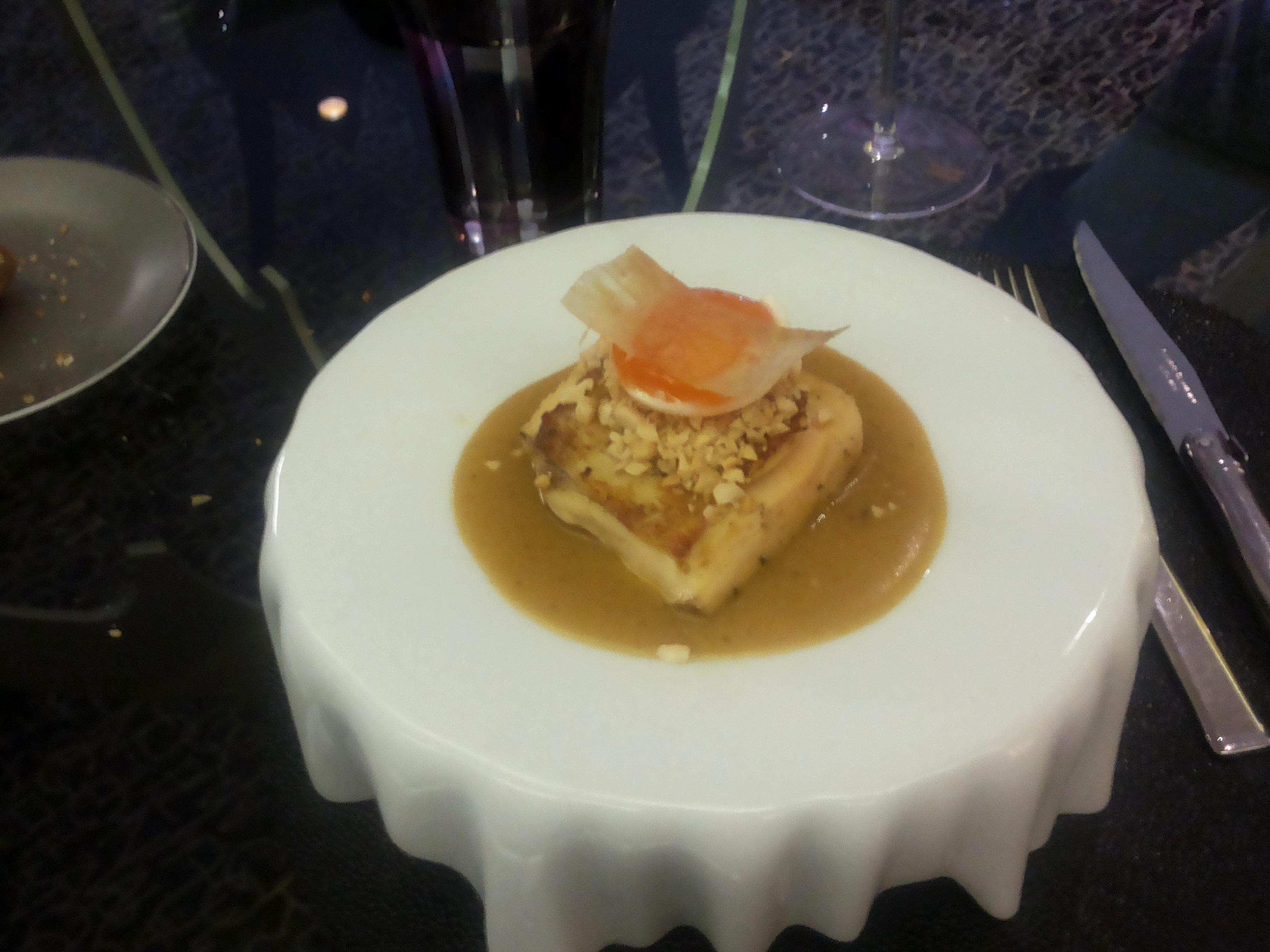 Entre bocado y bocado, un sorbo de burbujas heladas, regalo de la casa, que animan la charla. Mariajo, que ha pedido como yo el foie, esta fascinada, Diego saborea con avidez el arroz, y M los langostinos, tanto tiempo alejada del marisco, que le encanta. Al terminar, esperamos ansiosos la segunda tanda. Siguiendo el consejo del maître, hemos pedido dos entrantes, un principal y postres.