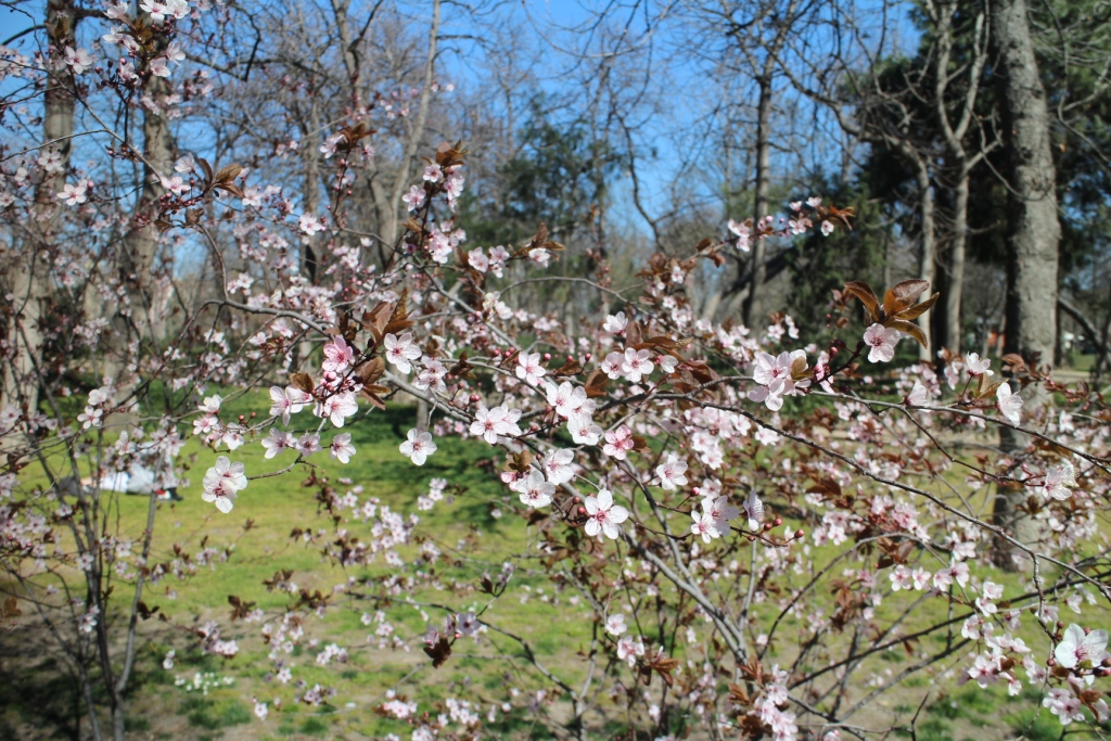 La hierba de un verde intenso salpicada de margaritas. El murmullo de la ciudad se aleja mientras dos mirlos se saludan en las alturas. En medio de la pradera un cerezo cargado de pétalos rosados. Dos abejorros se emborrachan de polen y néctar. Siempre me ha sorprendido que los frutales desplieguen sus flores antes de cubrirse de hojas. Su aroma me envuelve en una nube de sosiego y esperanza. Bienvenida sea la primavera este año.