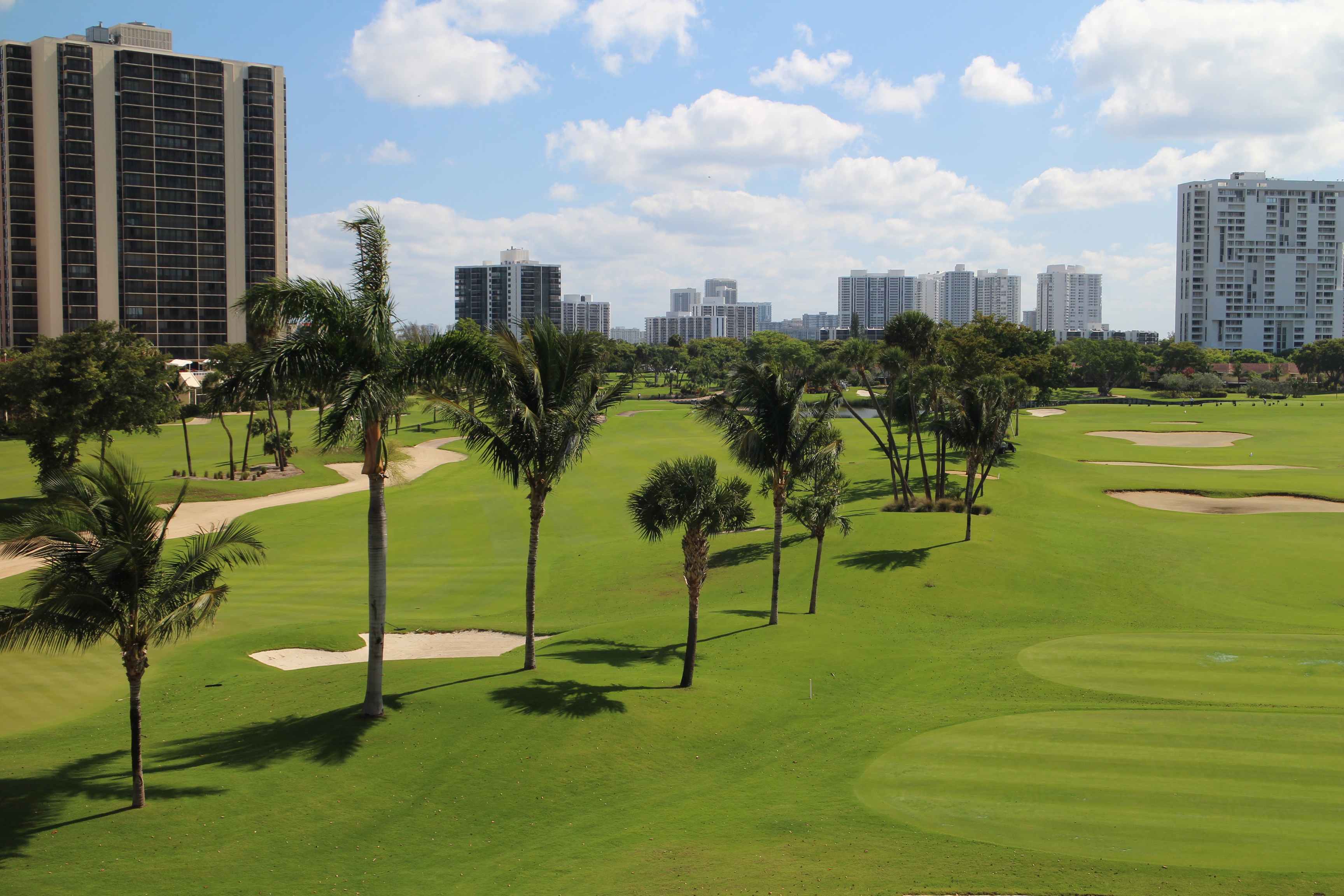 El retraso nos ayuda con el desfase horario, llegamos a nuestro hotel en Aventura a las once, el nombre perfecto. Una ducha y a la cama. Dormimos de un tirón nueve horas. Por la mañana las nubes se van despejando. Un desayuno frugal y al campo de prácticas. El hotel cuenta con dos campos rescatados a manglares y pantanos por Donal Soffer, un visionario que en 1967  imagino este paraíso para los amantes del golf. Dios le bendiga.