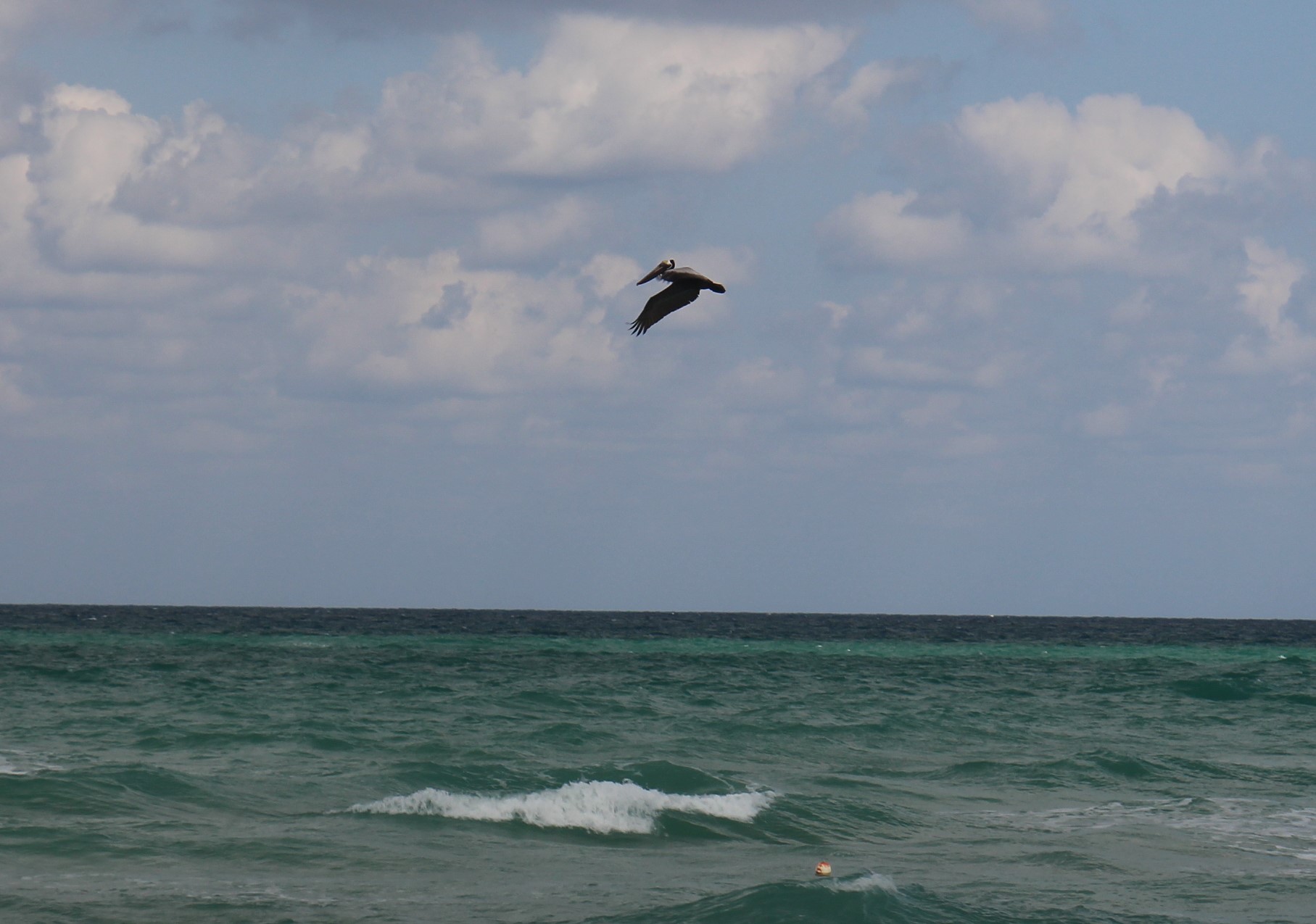 Tras el juego, un paseo por  Sunny Islands donde el Atlántico se transmuta en Caribe. La playa de arenas blanquísimas. Las aguas turquesas sobre arenales templadas nada que ver con las temperaturas del Atlántico en la costa europea. Frente a nuestro toldo dos pelícanos picotean presas en las orillas. Se le suman gaviotas y cormoranes. Un verdadero documental de naturaleza. Risas y juegos y familias disfrutando de un día extra de descanso.  Memorial Day, el día en que en los americanos recuerda a sus caídos.