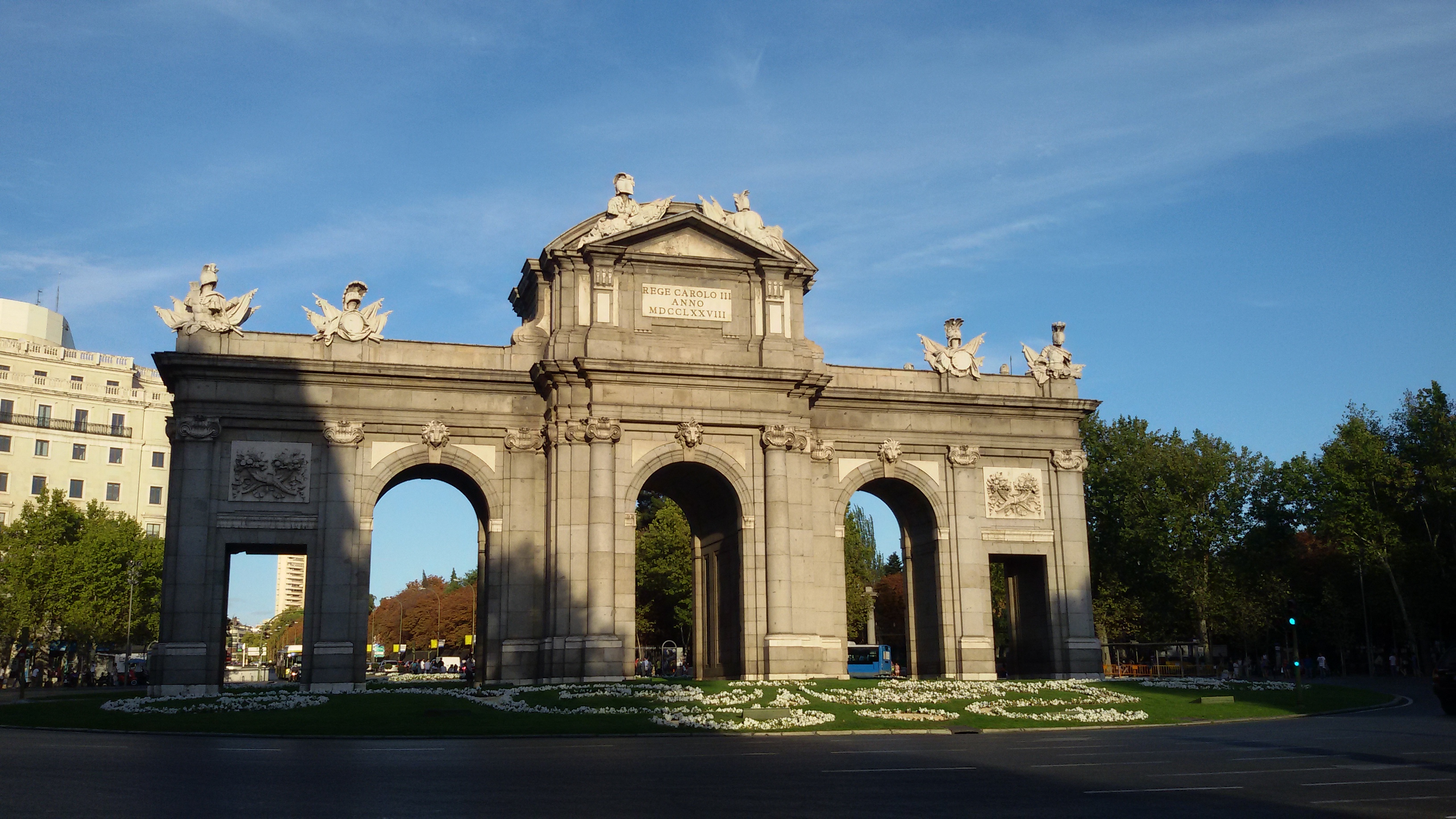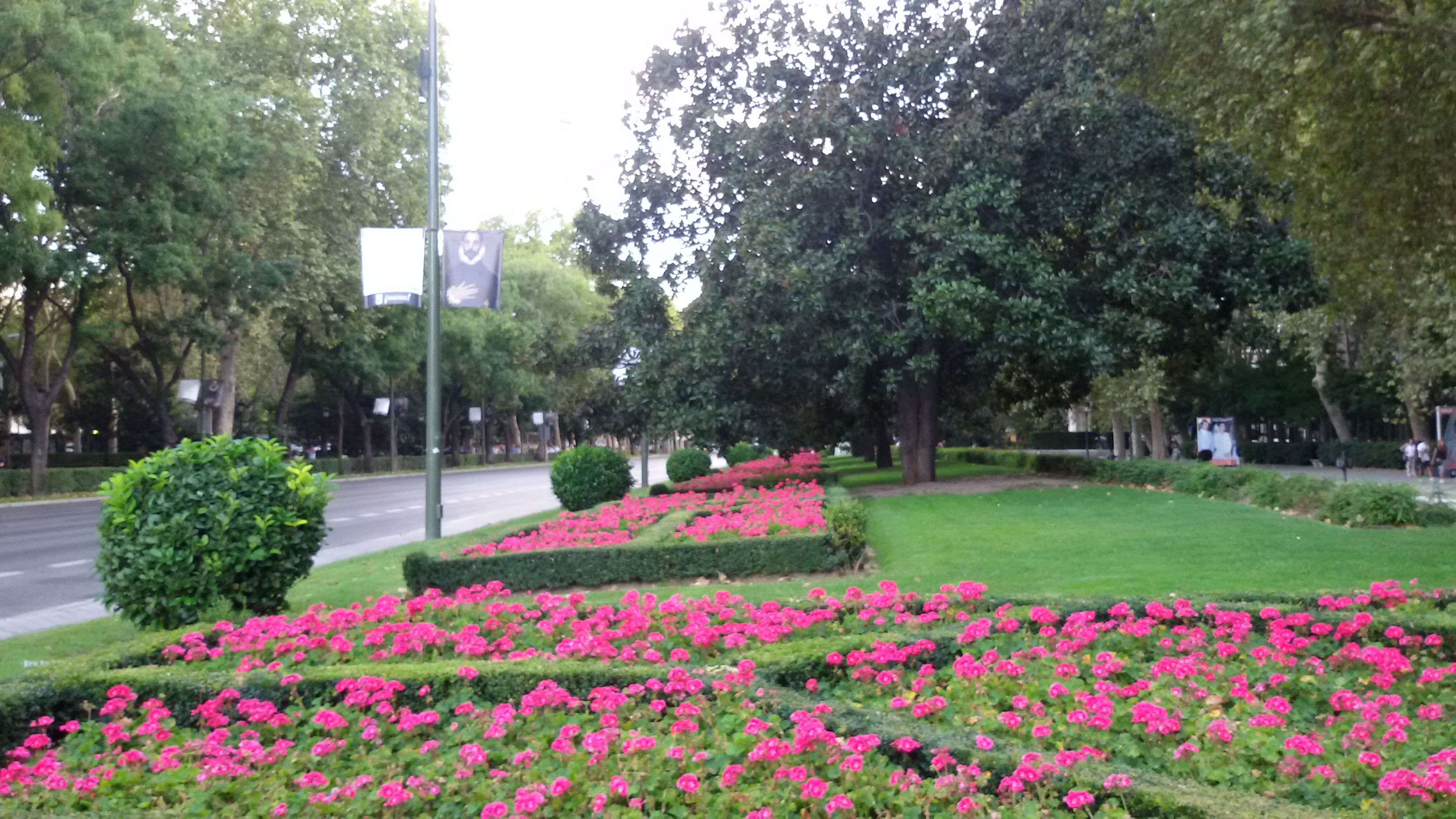 Por la tarde un paseo por el centro. Llego a Serrano con sus escaparates brillantes salpicada de parejas y cochecitos, la de niños que han nacido esta primavera. Parejas mayores cogidas de la mano, bicicletas y perros. La Puerta de Alcalá reluce con flores blancas. Bajo hasta Cibeles. Encuentro la calle vacía. Madrid sin coches es un lujo.
