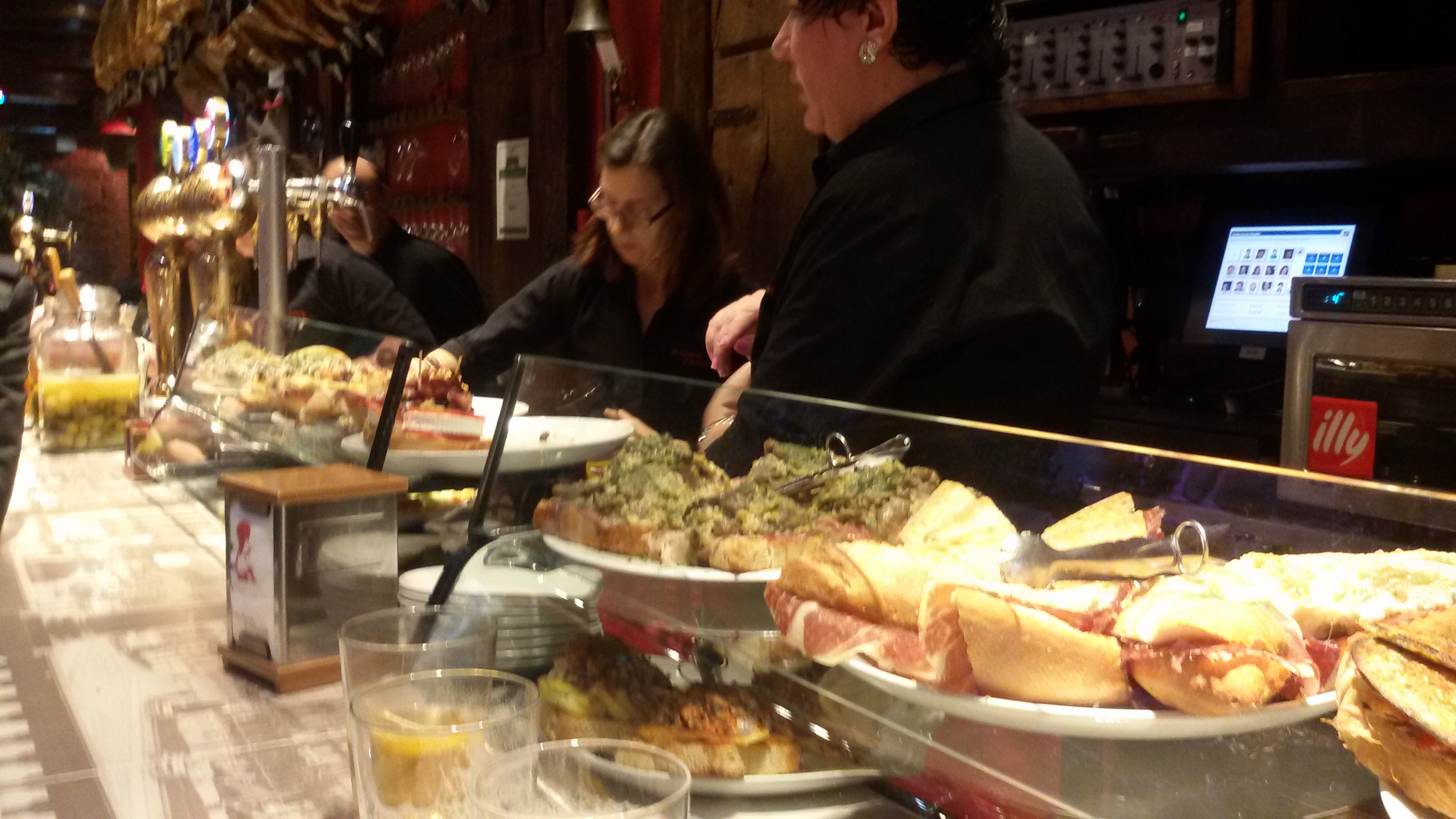 En el hotel La Perla, donde se hospedaba Hemingway, recogemos a unos amigos y decidimos irnos de “chiquiteo”, costumbre pamplonica de discutir de cualquier cosa y probar pintxos en las tascas del casco antiguo. Como los componentes de mi cuadrilla están algo cansados para discutir nos centramos en las tapas. Montados de chistorra, ventresca con tomate y cebolla, huevos estrellados, croquetas de balao, fritos de pimiento y hasta croquetas de chocolate. Mil y una delicias regadas con cañas y sidra. El mejor broche para nuestro primer día en Pamplona.