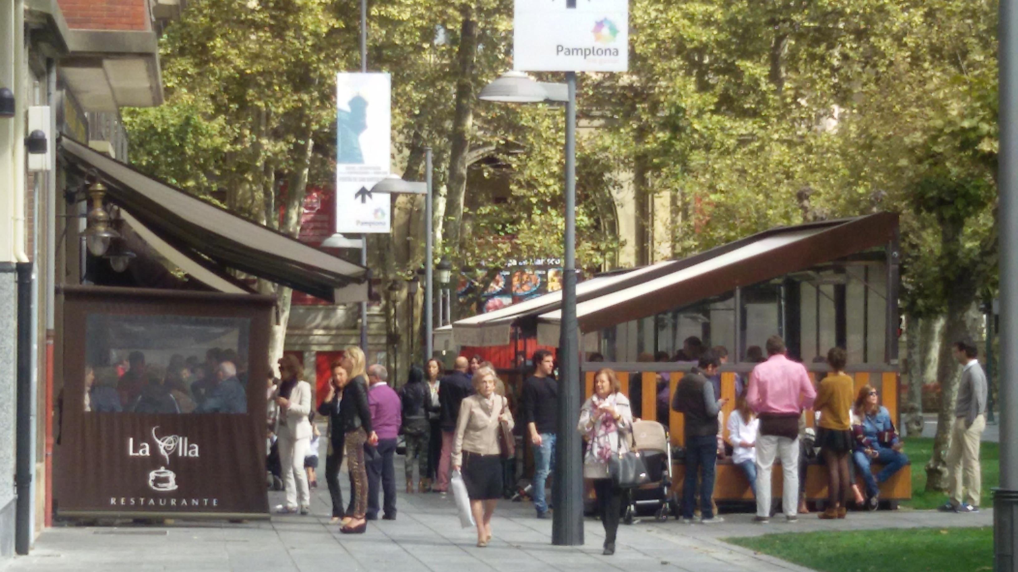 Madrid, Puerta Atocha. Tres horas y media después llegamos al casco antiguo de la capital Navarra. La tarde soleada. Dejamos las maletas en el Hotel Guendulain, palacio señorial del XVIII donde compartimos patio con una espectacular colección de carrozas de época. Nos perdemos por las callejuelas del casco antiguo, con sus escaparates atiborrados de velas naturales, hojaldres y frutas de la huerta.
