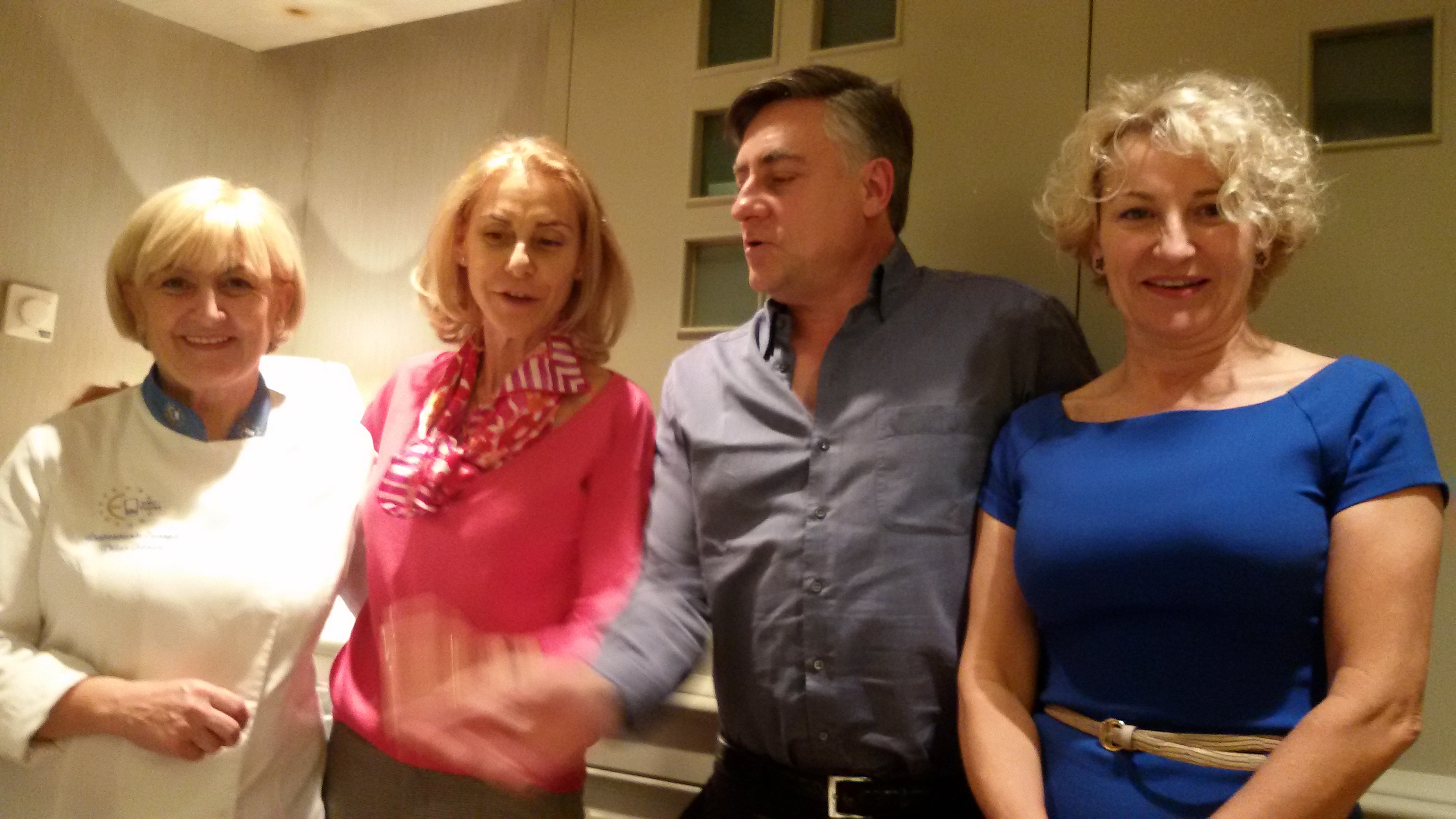 Quedamos encantados con las hermanas Idoate por su saber hacer y simpatía. Pilar nos regaló unos tomates «feos» de Navarra de porte y dimensión extraordinarios, unas conservas con los pimientos de piquillo que utiliza fuera de temporada y su truco para prepararlos en casa. Abrirlos en libro y limpiar la pepitas, freírlos en una sartén de piedra con muy poco aceite a fuego fuerte cuatro y tres minutos cada vuelta y al servirlos sazonarlos con un chorreón de aceite de oliva virgen y cebollino picado. Nos fuimos entusiasmados. Decidimos repetir experiencia cuando volvamos a Pamplona. Una comida en el restaurante Europa bien vale el viaje.
