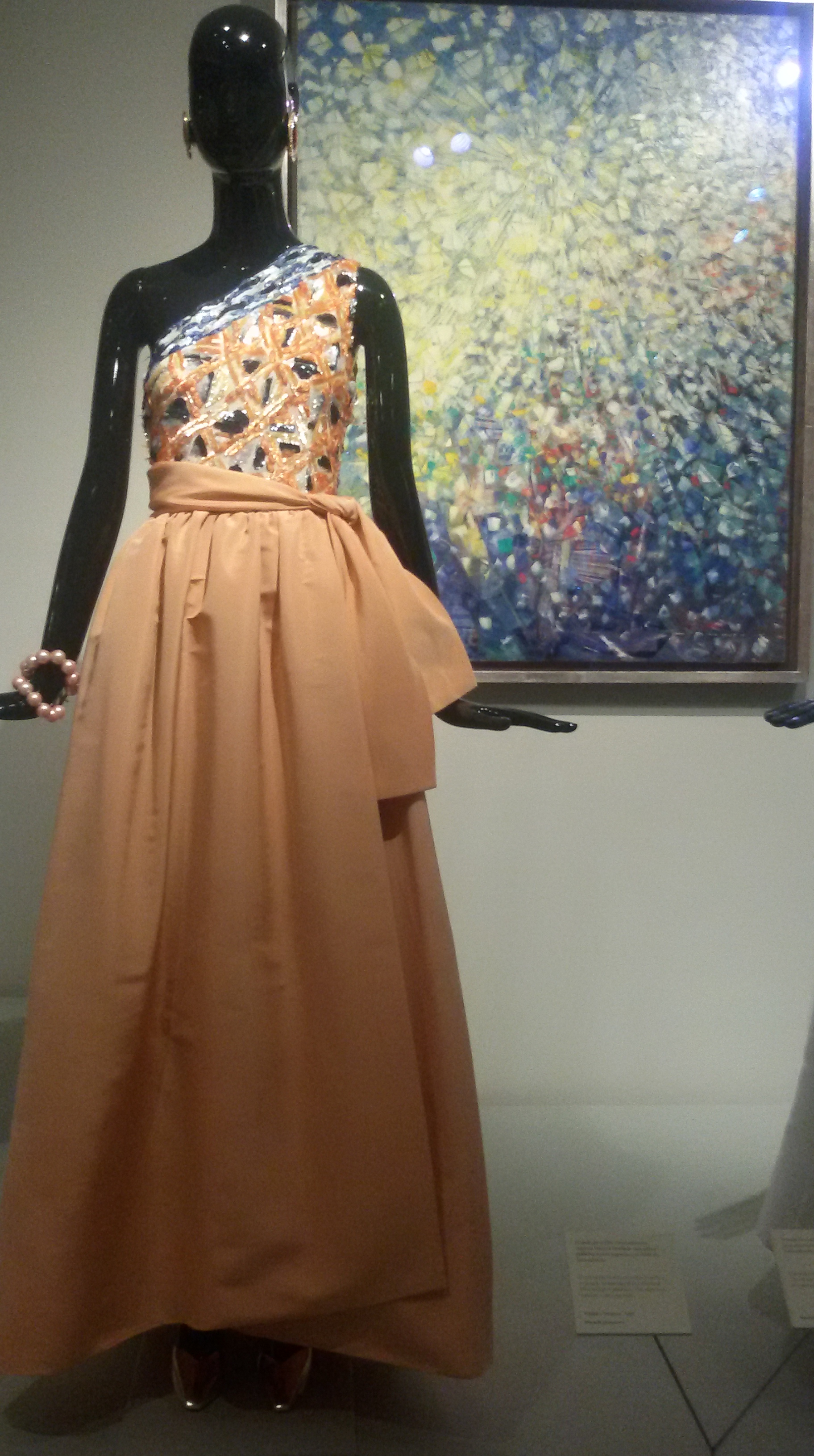 También me impresiona el conjunto que Givenchy diseñó en 1961 para Jaqueline Kennedy en su visita a Francia. Un abrigo en satén crudo sobre vestido bordado con flores barrocas, el arte siempre ha sido una inspiración del artista. Un acierto de la exposición enfrentar sus diseños a distintas obras de arte de la colección Thyssen que muestran está clara influencia.