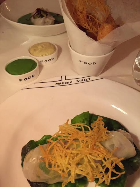 En The Gallery,decorado por India Mahdavi con un cierto aire retro en tonos chicle, se exponen 239 bocetos del artista David Shrigley que también firma los originales diseños de la loza. Pero lo que más nos gustó fue la comida. Probamos el foie gras con tejas de chocolate y pasta de higos original y delicado y una bisque de langosta con arroz salvaje deliciosa. De segundo el bacalao al vapor con sus verduritas y una interpretación del británico Fish and Chips sobresaliente. De postre M se atrevió a pedir un Malabar con helado de chicle con marshmallows de naranja y fresa, muy divertido. El ambiente distendido, los camareros amables y la comida deliciosa. No se puede pedir más para asegurarse una noche divertida en Londres.
