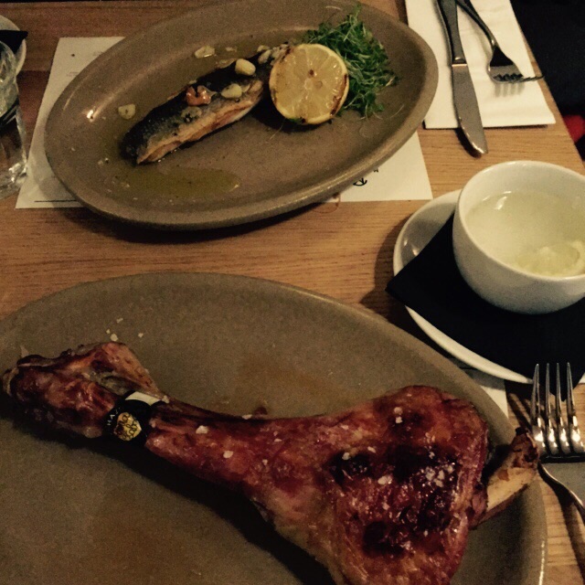 Asador Morada Brindisa, uno de los restaurantes españoles más valorados de Londres. Después de unos días de hamburguesas y pasta, nos apetecían las croquetas de jamón, las verduras en escalibada y la tortilla. Uno de los camareros nos confesó que el 80% del producto venía de España. Qué bueno el pescadito frito, hacía tiempo que no probaba las acedías y los chopitos. M de segundo devoró una paleta de lechal que tanto echa de menos viviendo en Escocia. Curioso observar a una pareja de británico destripando croquetas, admirados de que por dentro fueran blancas cuando todo el mundo sabe que el jamón serrano es rojo oscuro. Casi nos partimos de la risa.