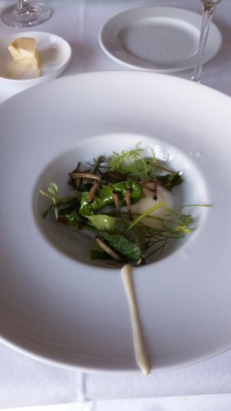 Huevo de pato de Balquhidder, trufas y hojas de la huerta.