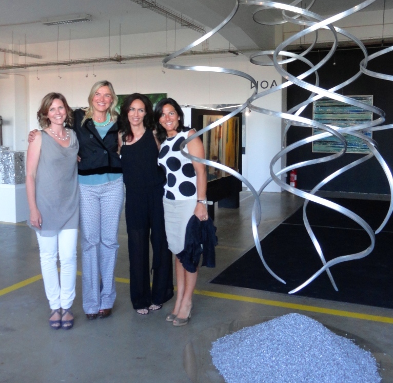 Y llego el momento que tanto esperábamos. La sala prístina, los cuadros integrados en paneles blancos y negros atrayendo las miradas. Virginia y Karen llegaron las primeras. Besos y sonrisas. Después llegó Marina y finalmente Rox que no paro de saludar a cónsules, embajadores y amigos. Las retratamos junto a las ondas plateadas de la instalación que han creado para celebrar este evento. Bonito recuerdo de su exposición conjunta.