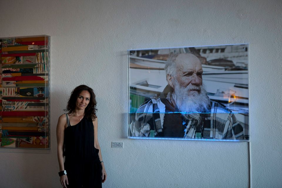 Maria Virginia Fiorini con su caja con pescador, luz y agua.
